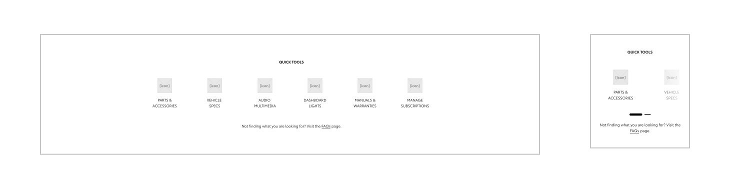 B: Quick Tools Menu. By creating a single source for all Model / Year contextual links, I could explore removing links from the crowded navigation and consider how the owner’s environment fits into the new global nav.