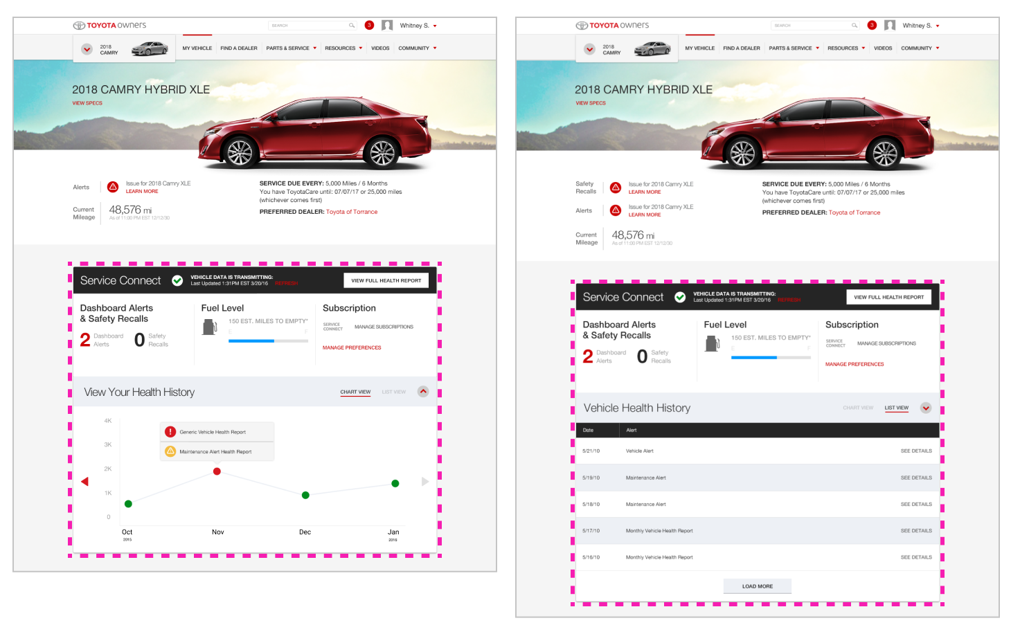 Toyota.com > Owner’s Dashboard User Flow, Part 2